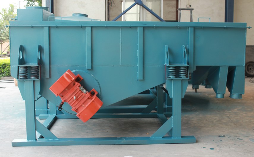 直線振動篩是振動篩的一種,主要是利用振動電機(jī)激振作為振動源,使物料在篩網(wǎng)上被拋起,同時向前作直線運(yùn)動,物料從給料機(jī)均勻地進(jìn)入篩分機(jī)的進(jìn)料口,兩電機(jī)同步反向旋轉(zhuǎn)使激振器產(chǎn)生反向激振力,迫使篩體帶動直線振動篩篩網(wǎng)做縱向運(yùn)動,使其上的物料受激振力而周期性向前拋出一個射程,從而完成物料篩分作業(yè)。
